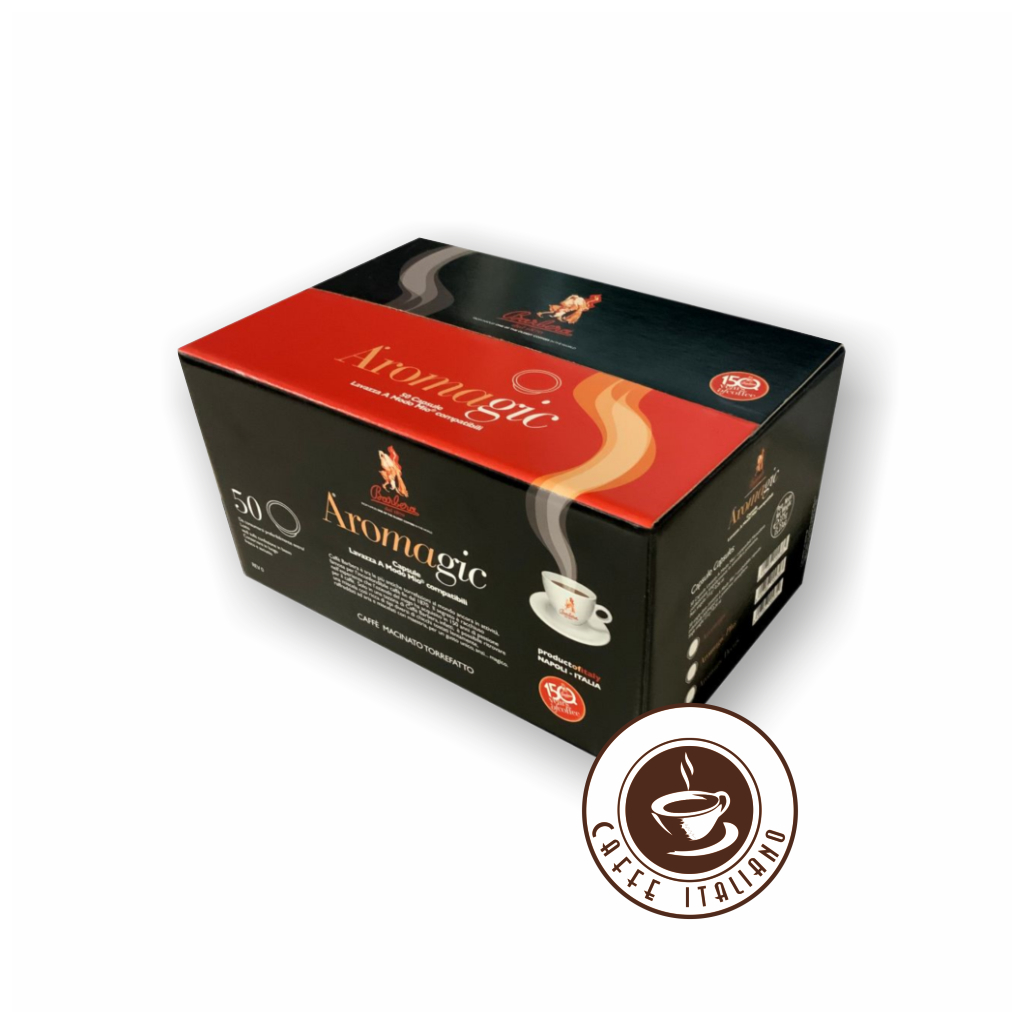 Kapsule Caffè Barbera sú kompatibilné s veľmi obľúbeným systémom Lavazza A Modo Mio a nájdete ich tu v elegantnom 50-dielnom balení. Caffè Barbera využíva výbery najlepších kávových plantáží, vyberaných priamo z Brazílie a Indie. Každá odroda je pomaly a individuálne pražená, aby bola zmiešaná podľa tradície trvajúcej 150 rokov. Výsledkom je jedinečná, krémová zmes s bohatou arómou: klasika neapolskej kávy. Naše kapsuly sú uzavreté v kapsule šetriacej vôňu, ktorá zachováva arómu kávy v každej šálke.
