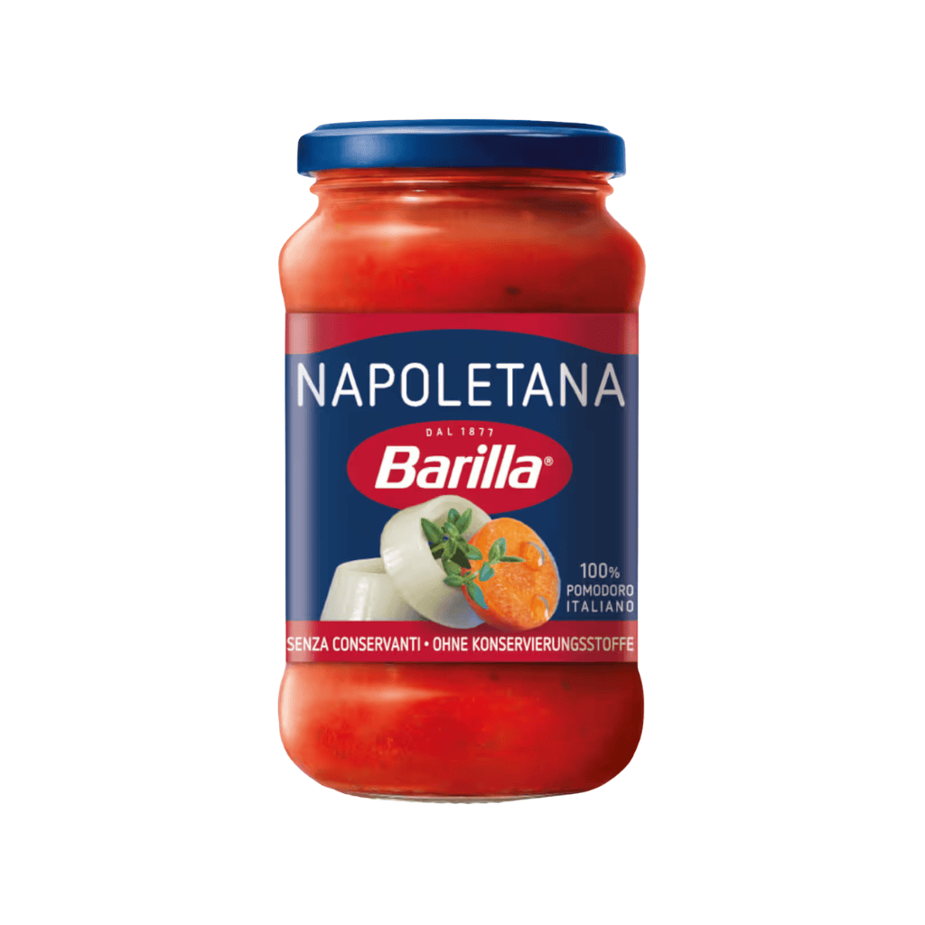 Vychutnajte si kúzlo Neapola s omáčkou Barilla Napoletana, ktorá je oslavou jednoduchosti a bohatej chuti stredomorskej kuchyne. Základom sú 100% talianske paradajky, ktoré dopĺňa jemná chuť cibule, mrkvy a podmanivá aróma cesnaku spolu s vybranými bylinkami.