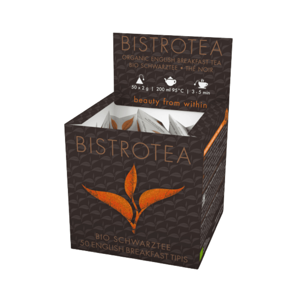 Bistrotea Tipis Anglické raňajky je klasický BIO čierny čaj z lístkov pestovaných na Srí Lanke. Vďaka pyramídovým sáčkom Tipis® má čaj pri lúhovaní dostatok priestoru, čo zvýrazňuje jeho plnú chuť, výraznú arómu a prirodzene povzbudzujúci účinok.