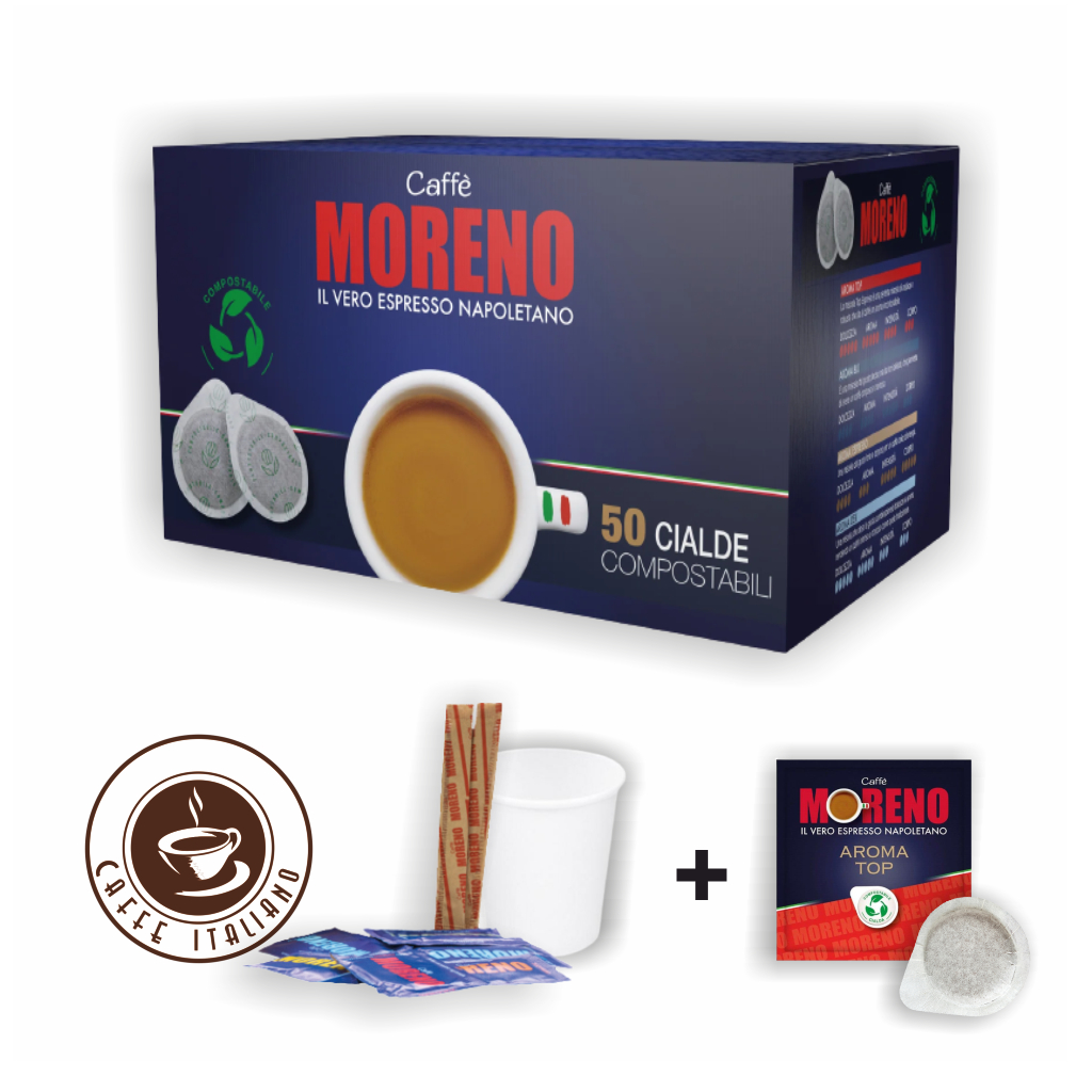 Caffe Moreno set e.s.e.pody Aroma Top 50ks+ pohár + miešatko + cukor