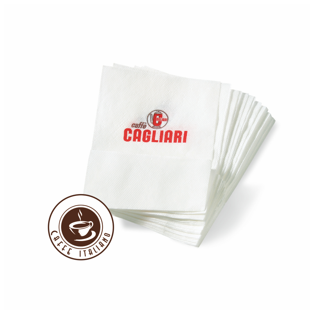 Servítky s logom firmy Cagliari Caffe ktoré nesmú chýbať pri vašej obľúbenej šálke kávy.