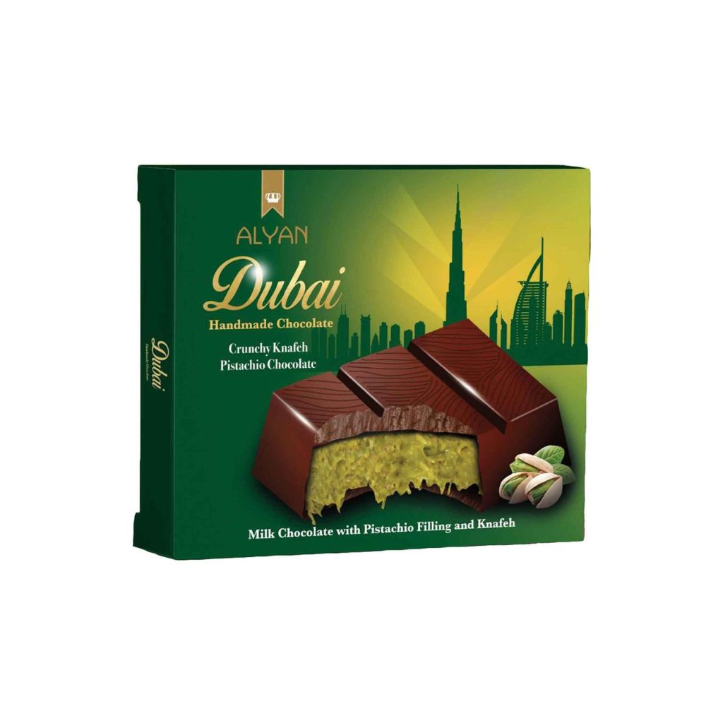 Objavte jedinečný chuťový zážitok s Aylan Dubai čokoládou, ktorá vás prenesie do exotickej atmosféry Dubaja. Táto starostlivo vyrobená mliečna čokoláda je obohatená o chrumkavý kadayif a pražené pistácie, čím vytvára dokonalú harmóniu chutí a textúr. Dokonalá na vychutnanie samostatne alebo s kávou.