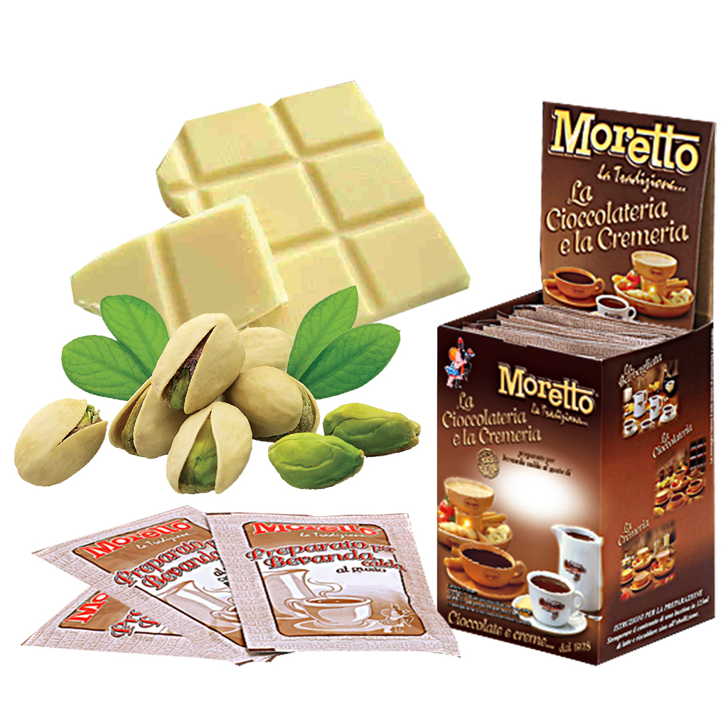 Horúca čokoláda biela s pistáciami Moretto