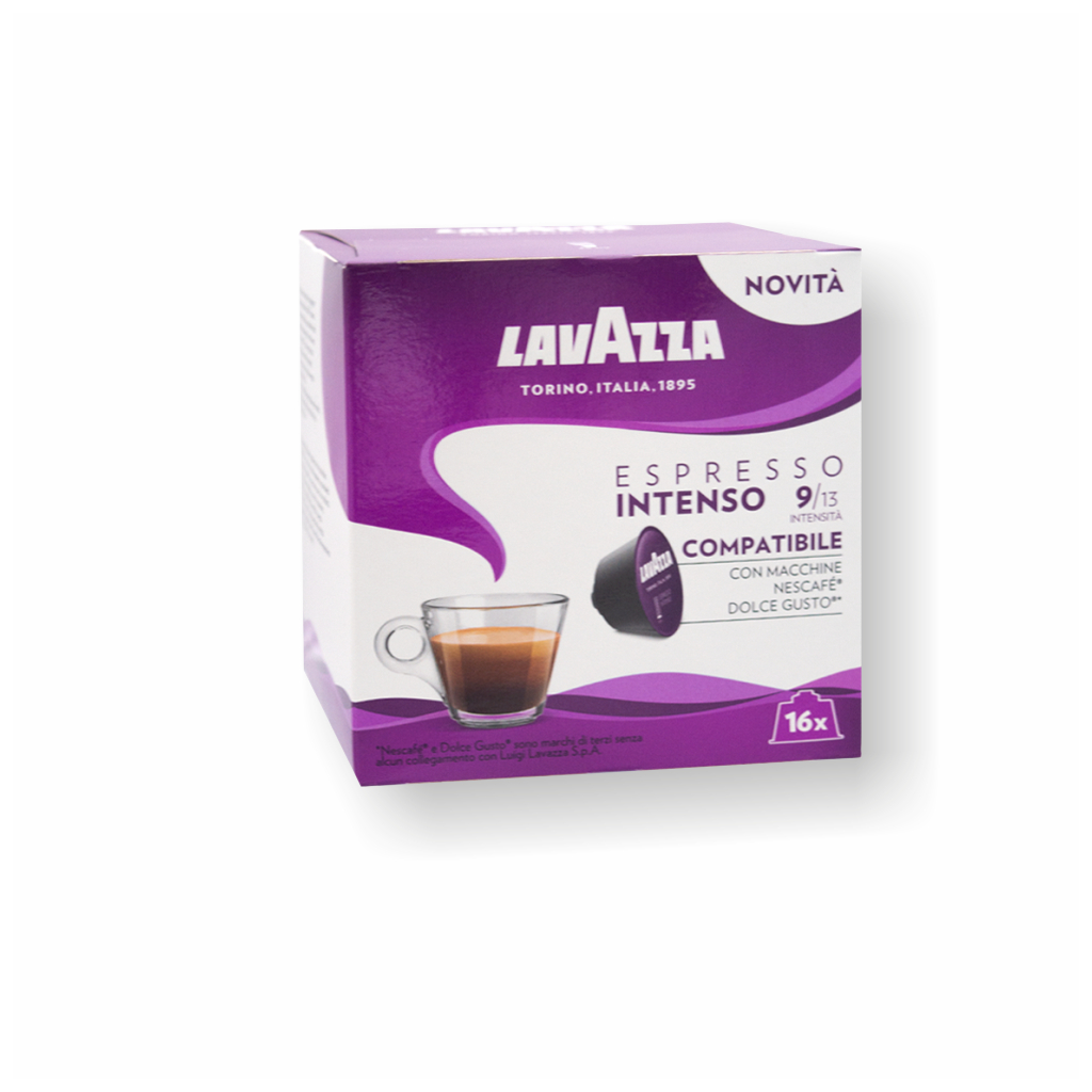 Lavazza Dolce Gusto Intenso je novinkou na slovenskom trhu. Originálne a plne aromatizované kávové kapsule od renomovanej značky Lavazza. Vytvorené na rozmaznávanie milovníkov klasického espressa. Každá kapsula obsahuje jedinečné zloženie zŕn Arabica zo Strednej a Strednej Ameriky, doplnené tou najlepšou a špeciálne vybranou Robustou. Silná aróma vám umožní vychutnať jej silný charakter, karamelové tóny a celé telo.