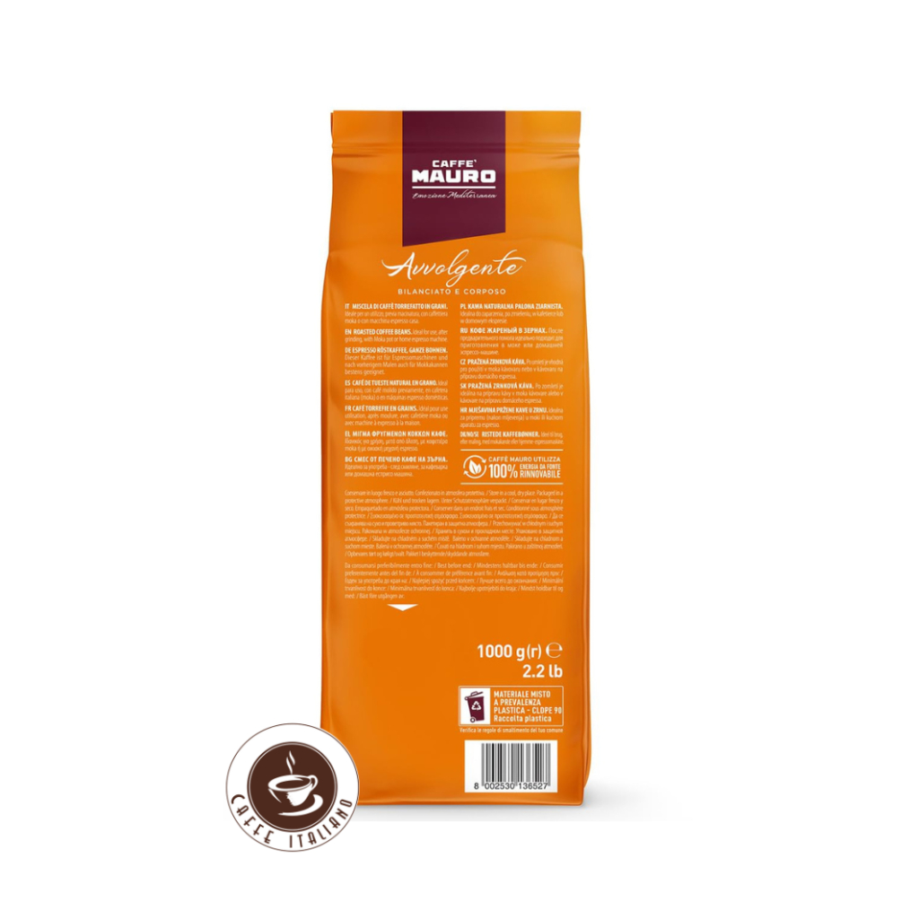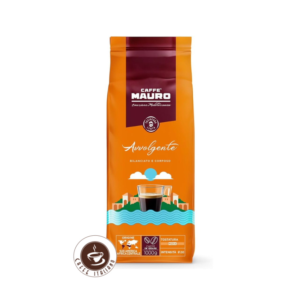 Mauro Avvolgente 1kg je zrnková káva, ktorá svojím názvom – v preklade „zahaľujúca“ – dokonale vystihuje svoj charakter. Ide o harmonickú zmes arabiky zo Strednej a Južnej Ameriky a robusty z Afriky, ktorá vyniká plným telom, vyváženou chuťou a výraznou arómou. Káva je stredne tmavo pražená tradičnou pomalou metódou (tostatura lenta), ktorá umožňuje rozvinúť jej komplexný chuťový profil bez stopy spálenia či horkosti.