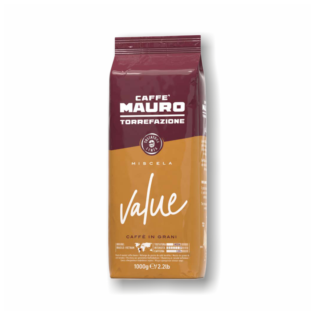Mauro Value je ľahko pražená zmes kávových zŕn Arabica (15%) z juhoamerických plodín s prevahou vysoko kvalitnej áziiskej robusty. Zloženie sa vyznačuje pomerne intenzívnou, korenistou chuťou a vysokým obsahom kofeínu.