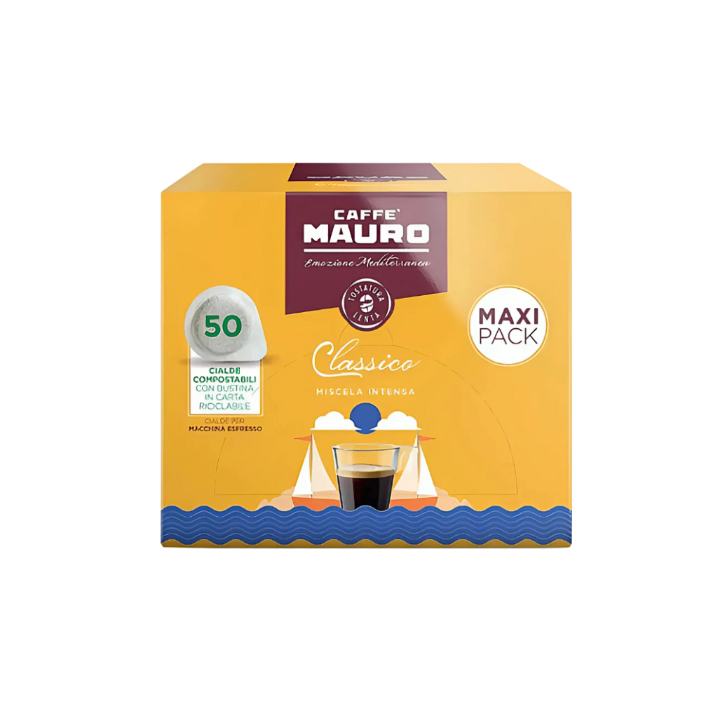 Mauro Classico Miscela Intensa E.S.E. pody predstavujú tradičnú taliansku zmes s pomerom 30 % arabiky a 70 % robusty, ktorá ponúka silný a plný chuťový zážitok. Starostlivo vybrané zrná pochádzajú z Brazílie a Ázie, čo zabezpečuje vyváženú kombináciu jemnosti a intenzity.