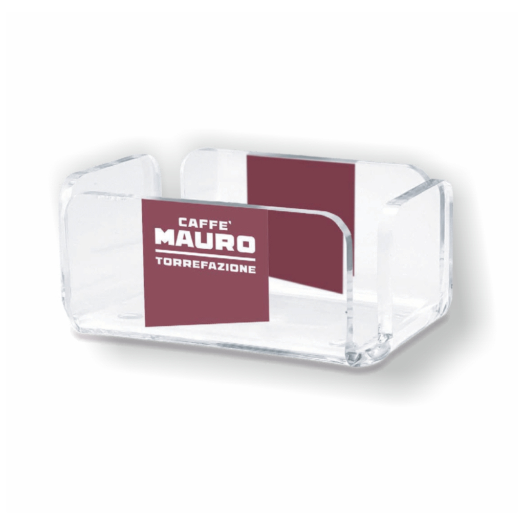 Držiak na cukor z priehľadného plexiskla s logom Caffe Mauro.