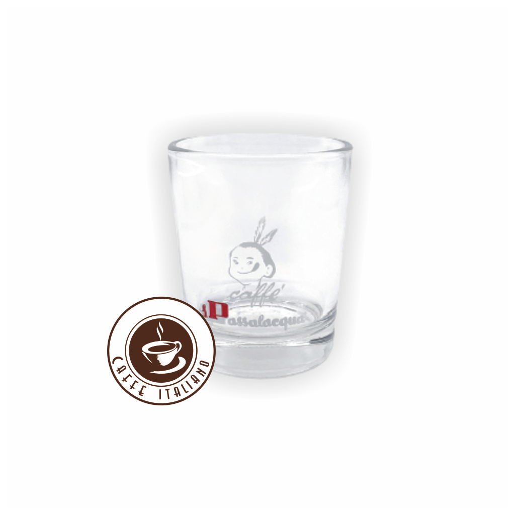 Sklenený pohár na podávanie vody k espressu, s logom Passalacqua. Môže sa použiť aj na prípravu malej kávy.