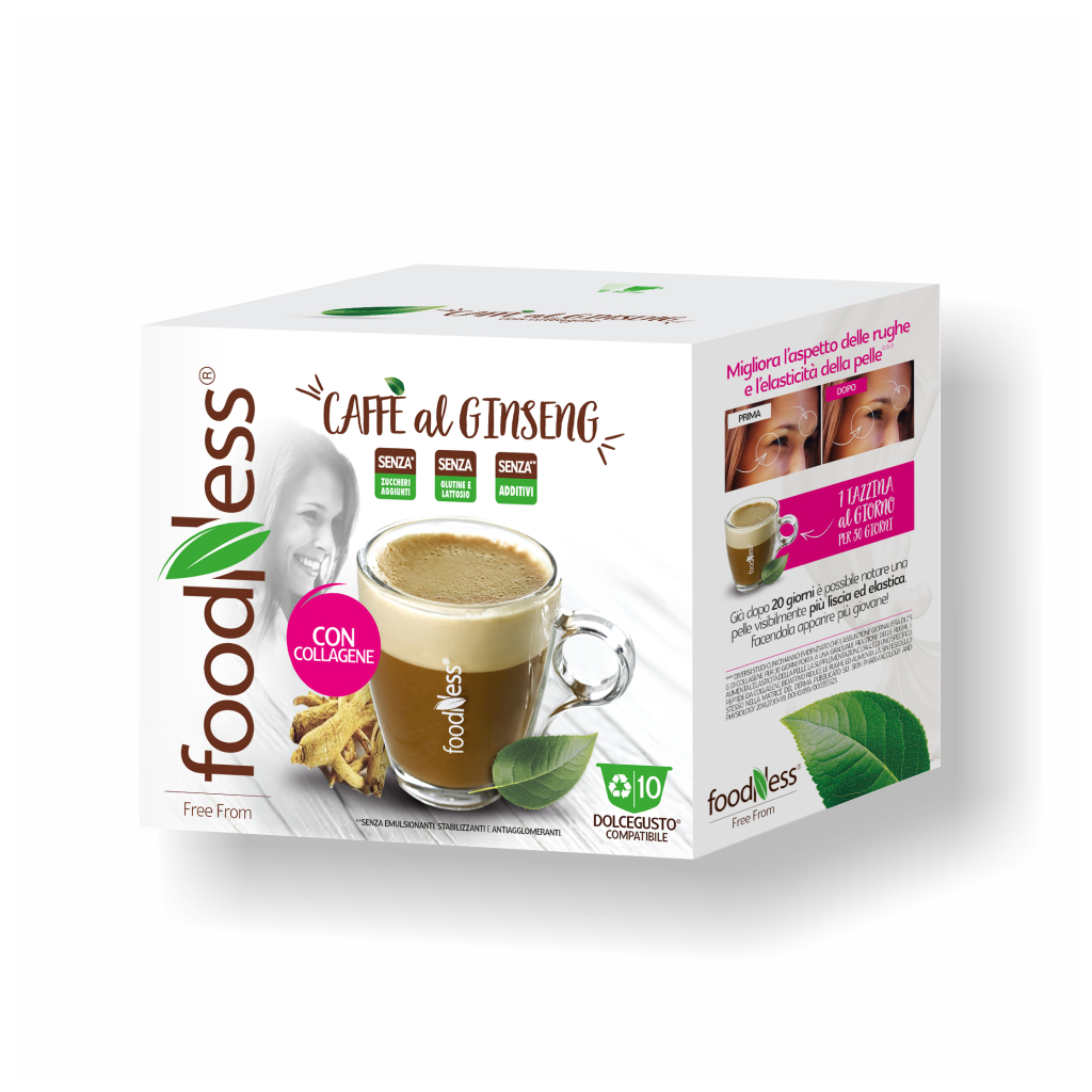 Foodness vyvinul nápoj s kávou , ženšenom a kolagénom. Každá kapsula obsahuje 2,5 g kolagénu Verisol, čo je minimálne množstvo odporúčané na zaručenie viditeľných výsledkov na pokožke. Ak je konzumovaný pravidelne zlepšuje vzhľad vrások a pružnosť pokožky.