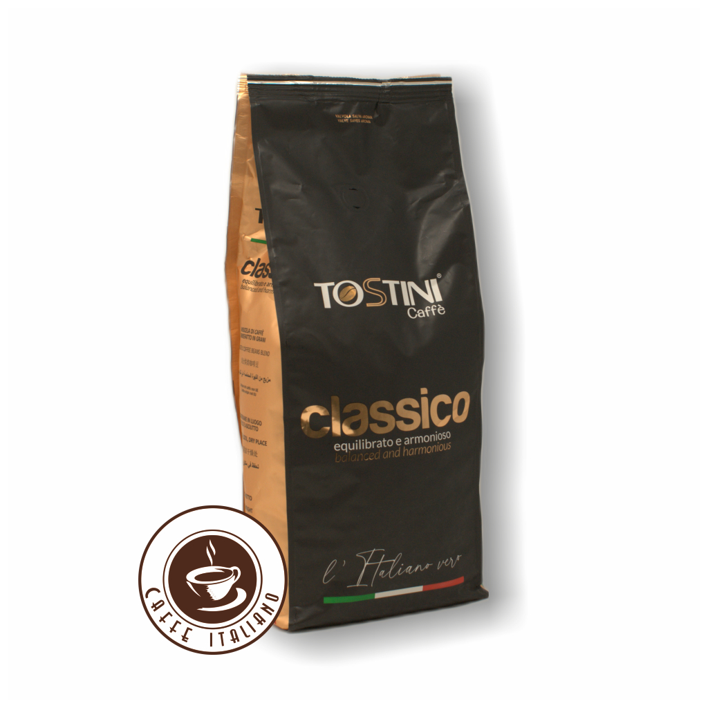 Zrnková káva Tostini Classico sa vyznačuje vyváženým telom, s nízkou kyslosťou, vôňou horkého kakaa a lieskových orieškov. Ideálna na prípravu espressa. Zároveň je vďaka bohatej pene a príjemnej aróme, ideálna na prípravu cappuccina.